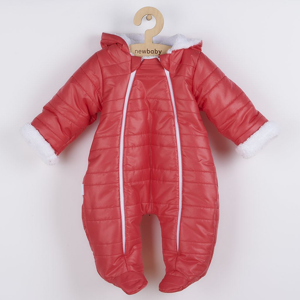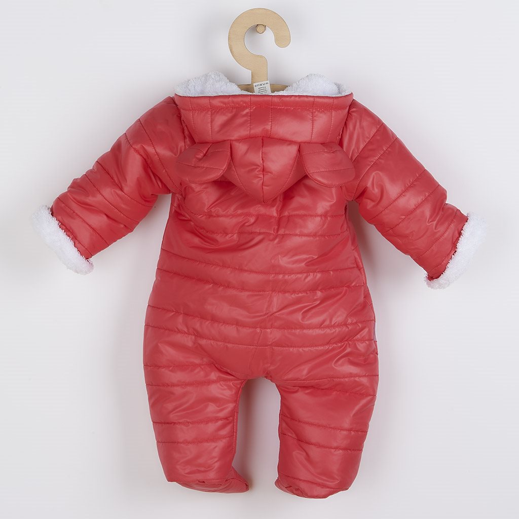 Niemowlęcy zimowy kombinezon z kapturem i uszkami New Baby Pumi red raspberry
