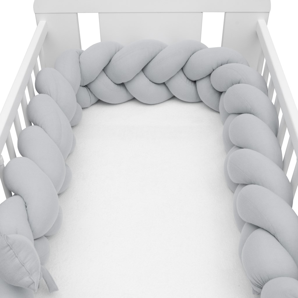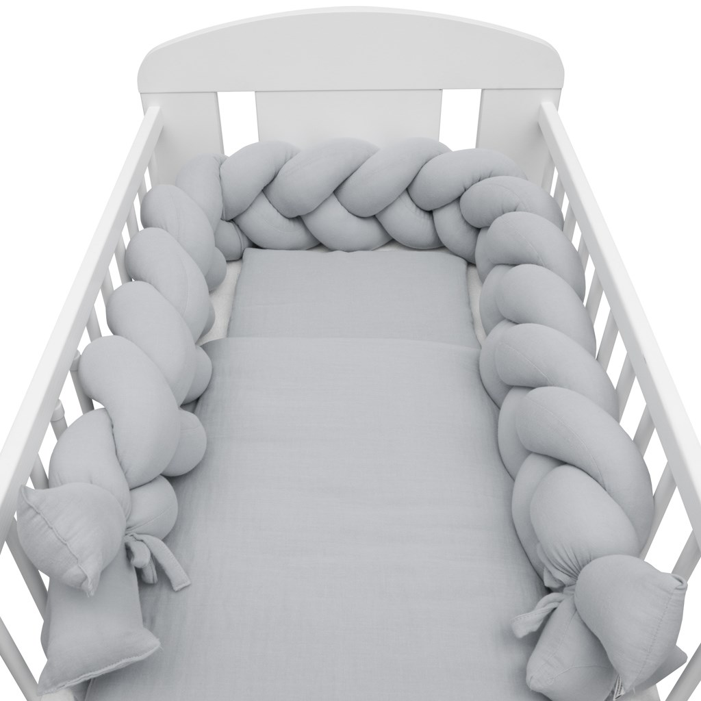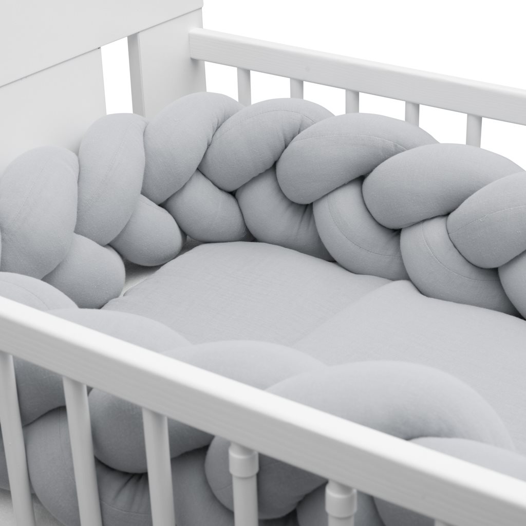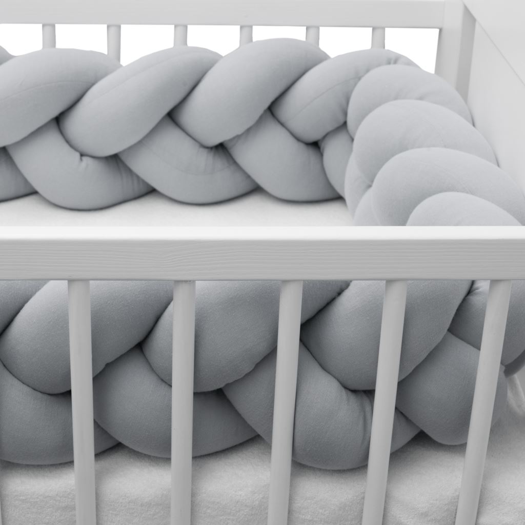 Ochraniacz do łóżeczka warkocz muślinowy New Baby jasny szary