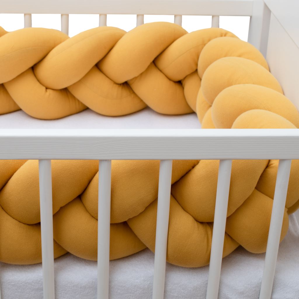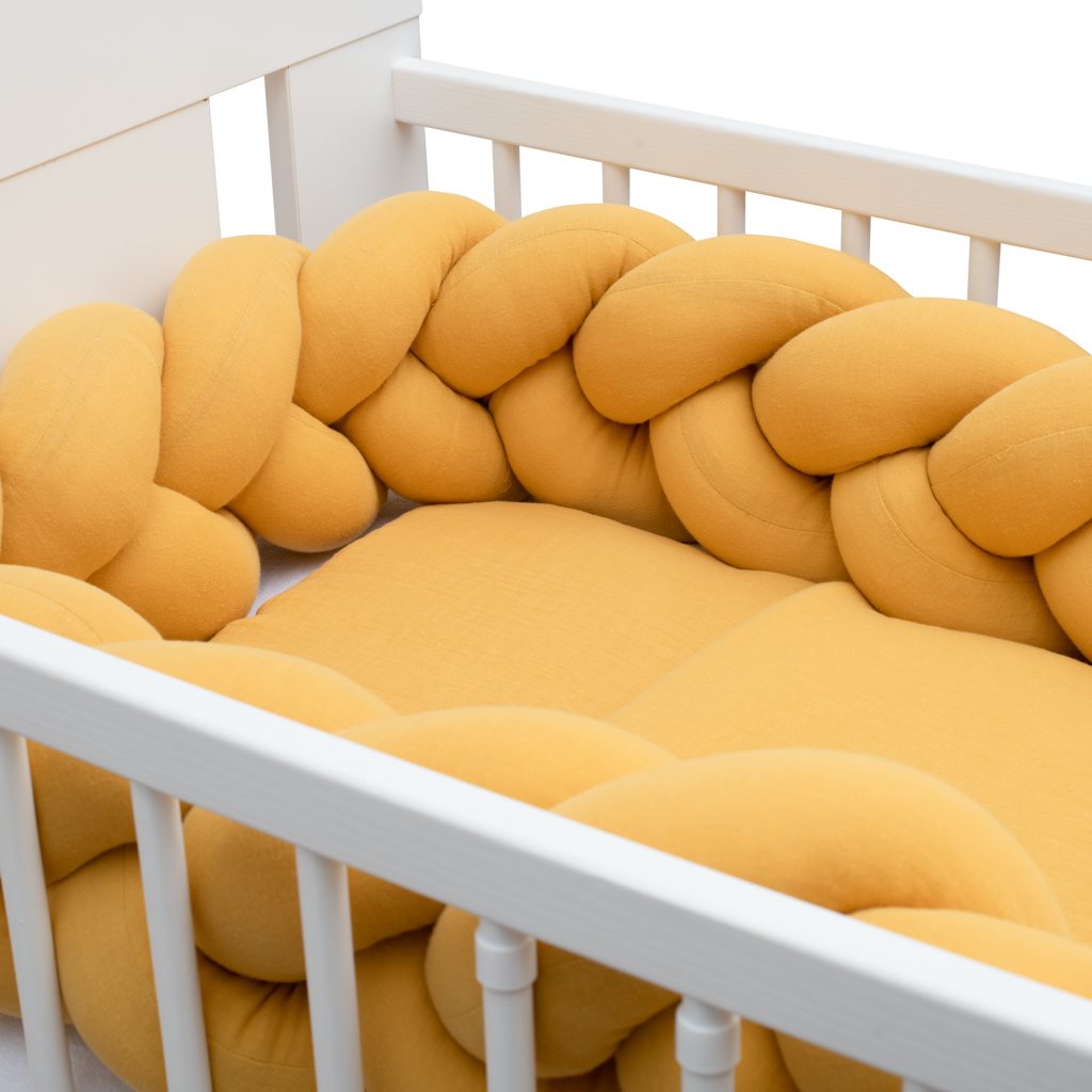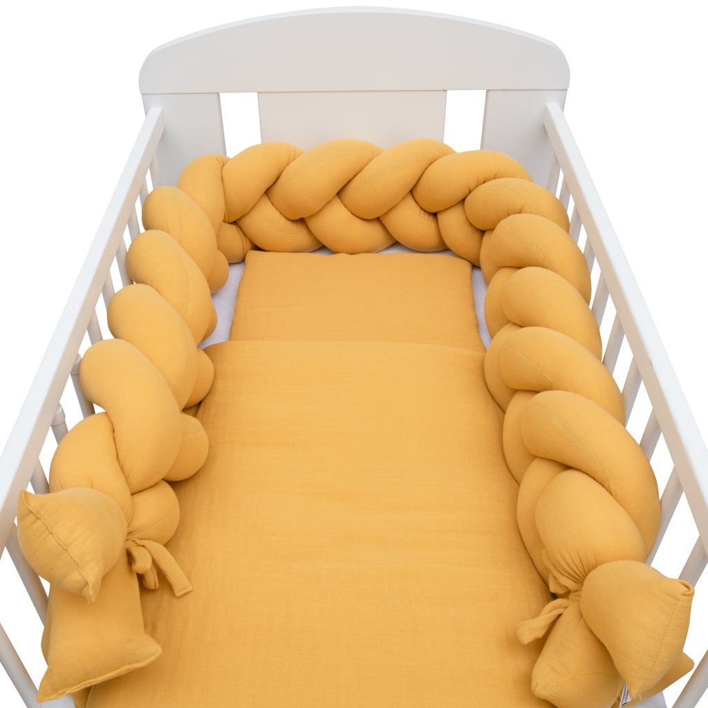 Ochraniacz do łóżeczka warkocz muślinowy New Baby musztardowy
