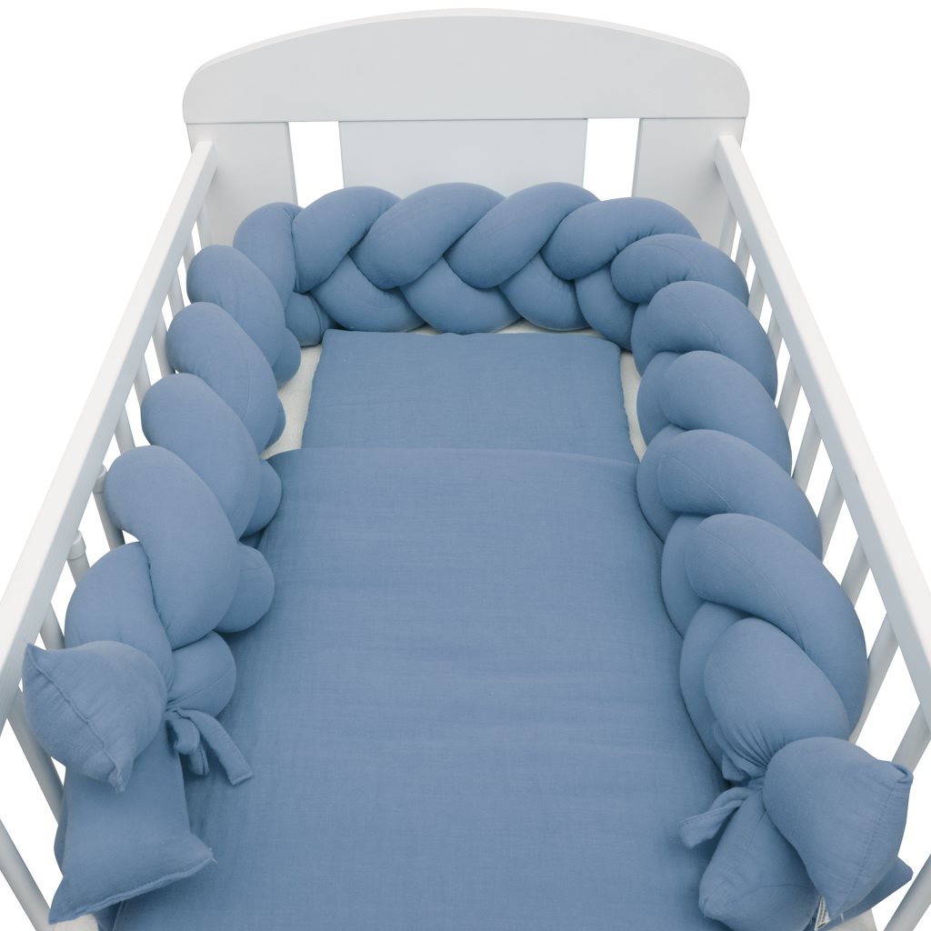 Ochraniacz do łóżeczka warkocz muślinowy New Baby niebieski