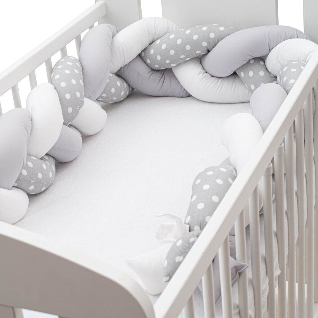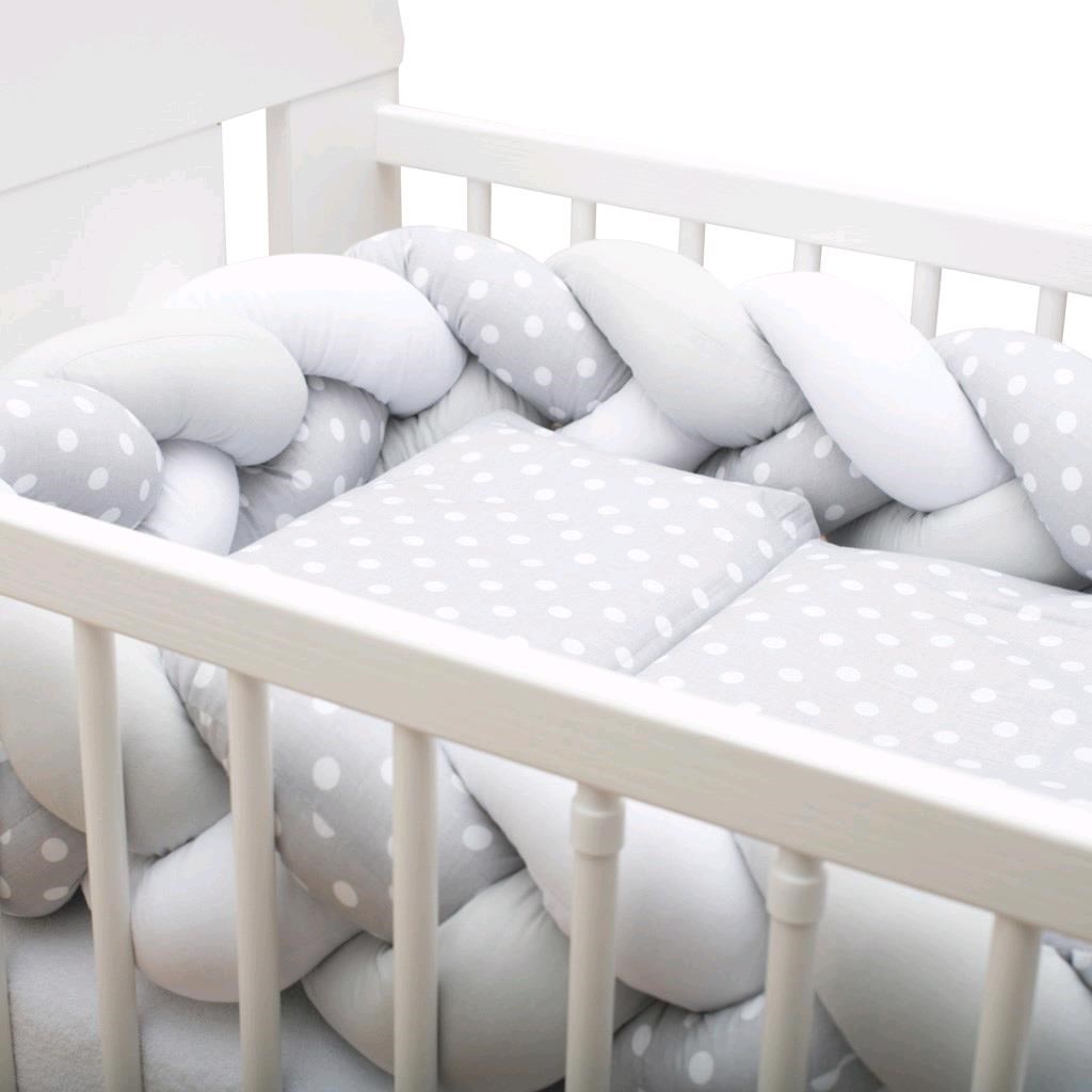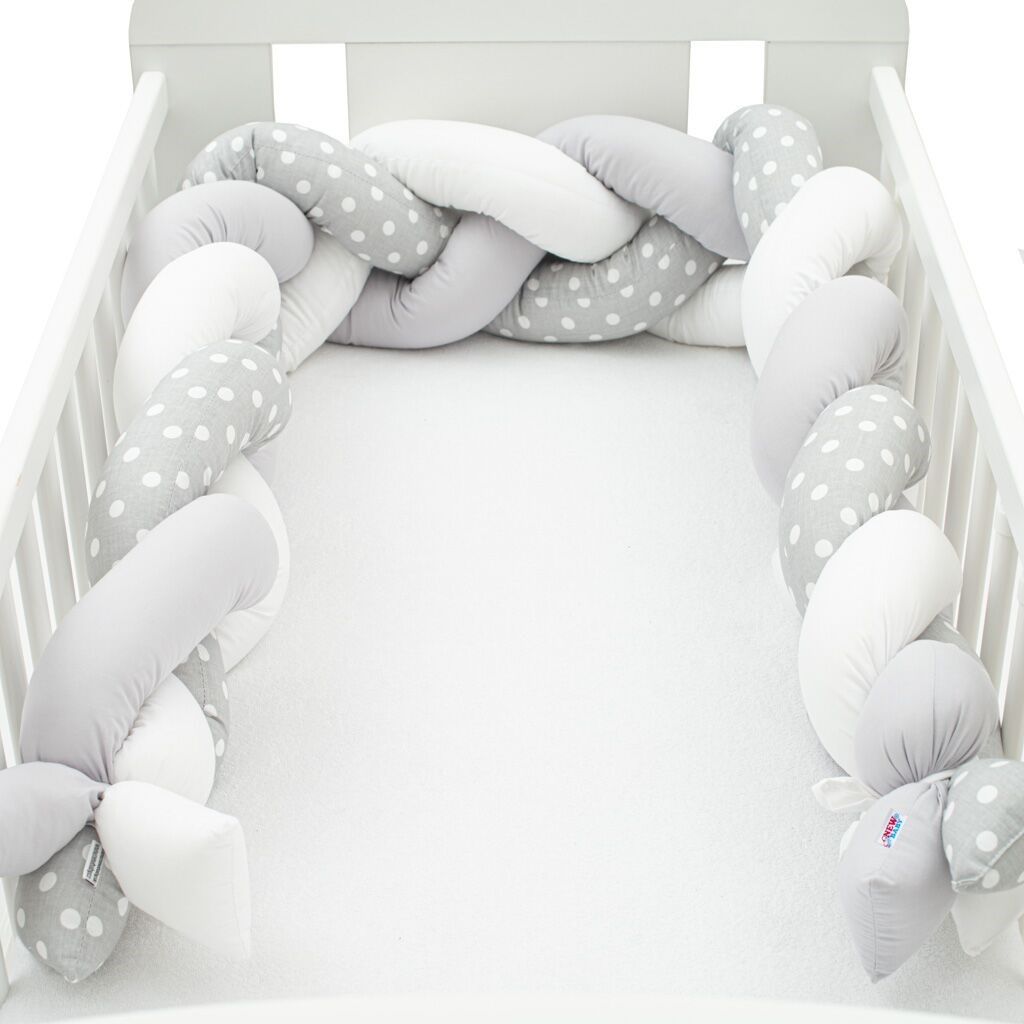 Ochraniacz do łóżeczka warkocz New Baby Groszek szaro-biały
