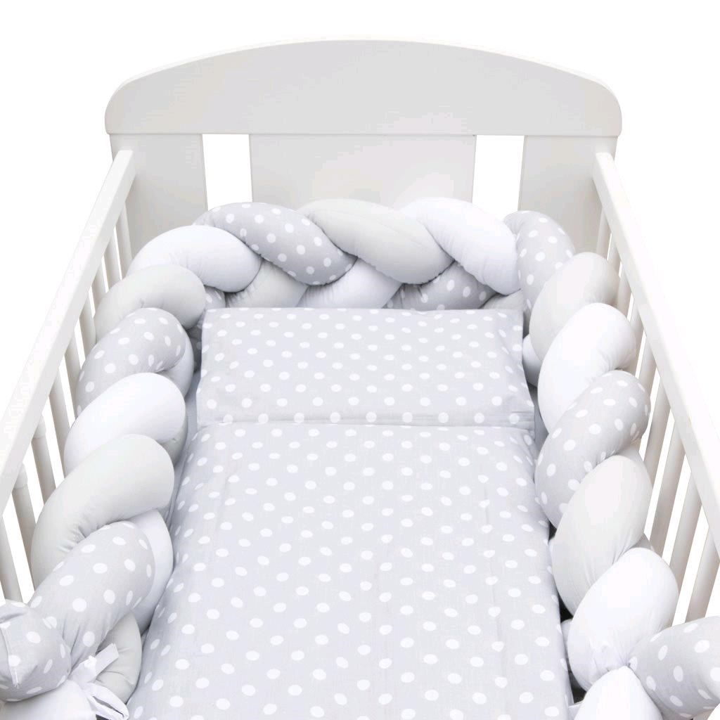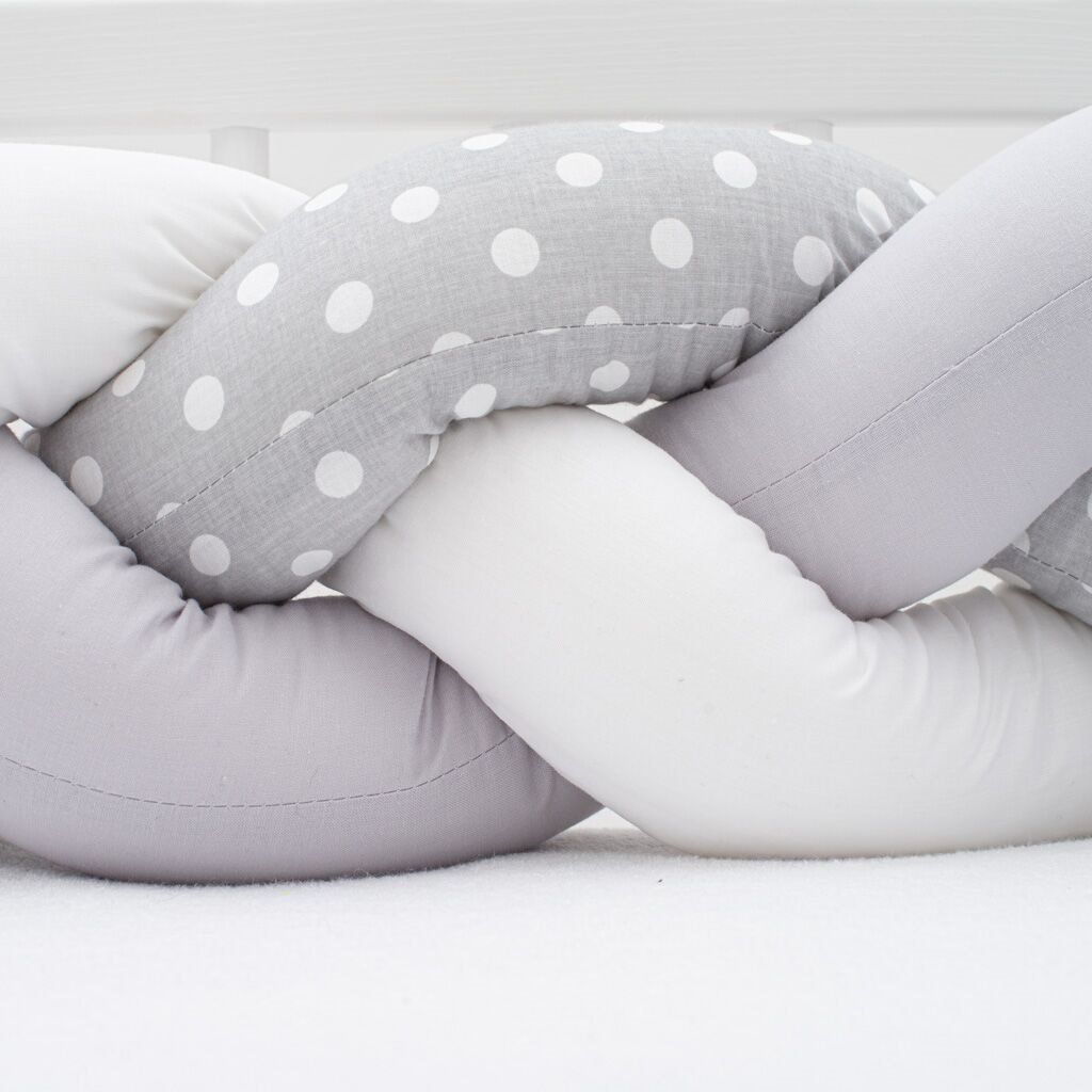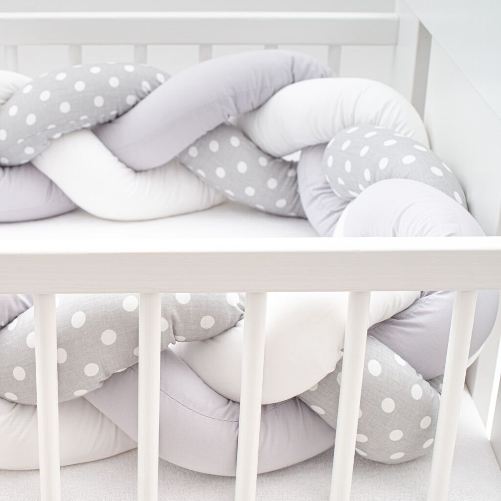 Ochraniacz do łóżeczka warkocz New Baby Groszek szaro-biały
