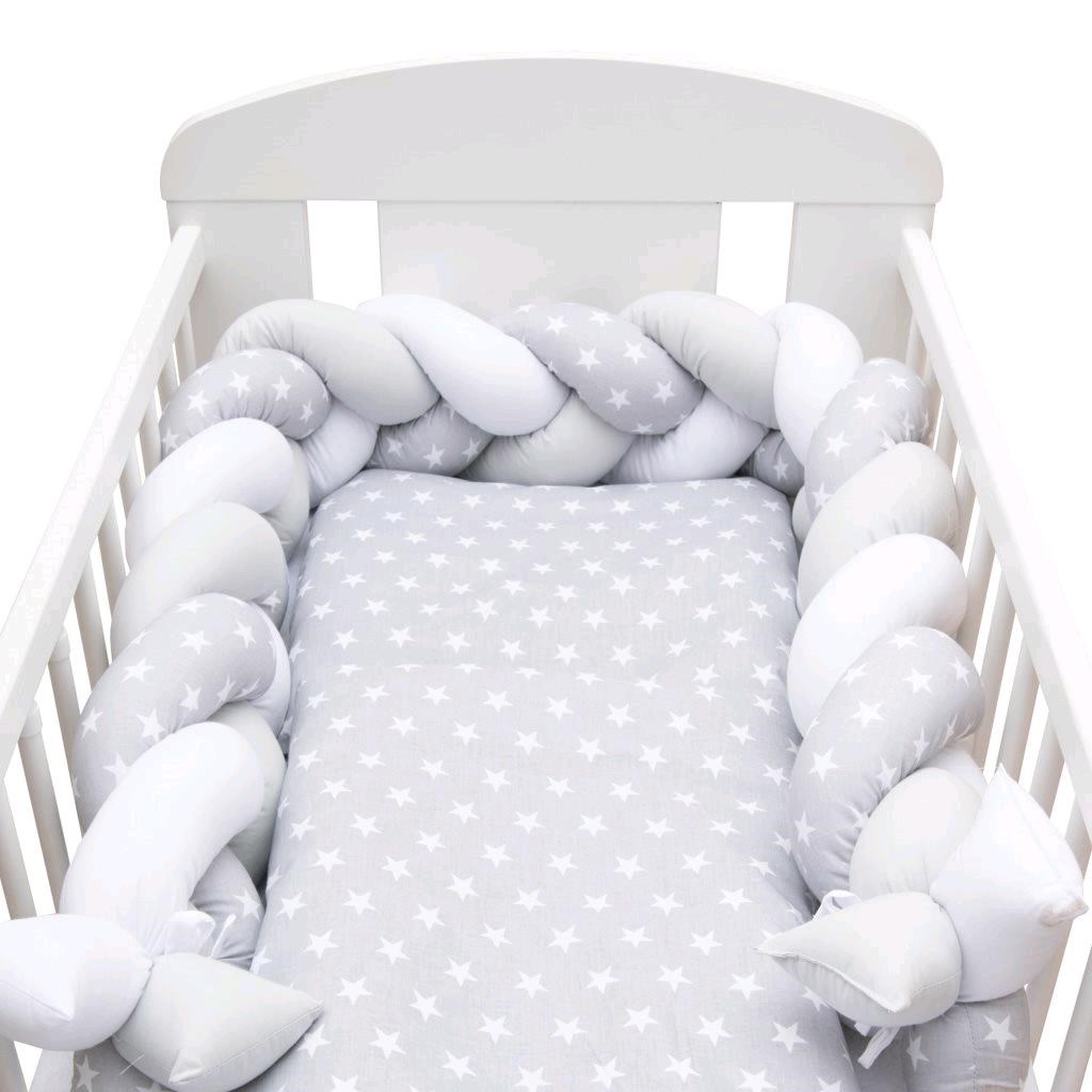 Ochraniacz do łóżeczka warkocz New Baby Gwiazdki szary biały
