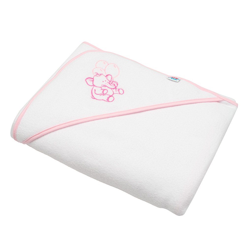 Okrycie kąpielowe frotte z kapturkiem i haftem New Baby 100x100 białe słonik