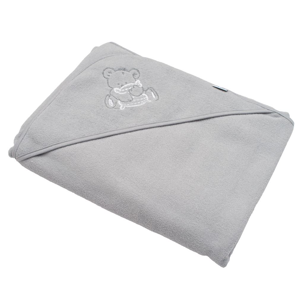 Okrycie kąpielowe frotte z kapturkiem i haftem New Baby 100x100 szare miś