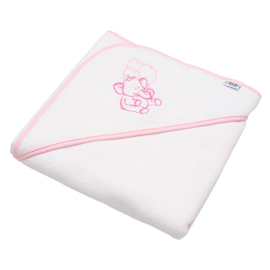 Okrycie kąpielowe frotte z kapturkiem i haftem New Baby 80x80 białe słonik