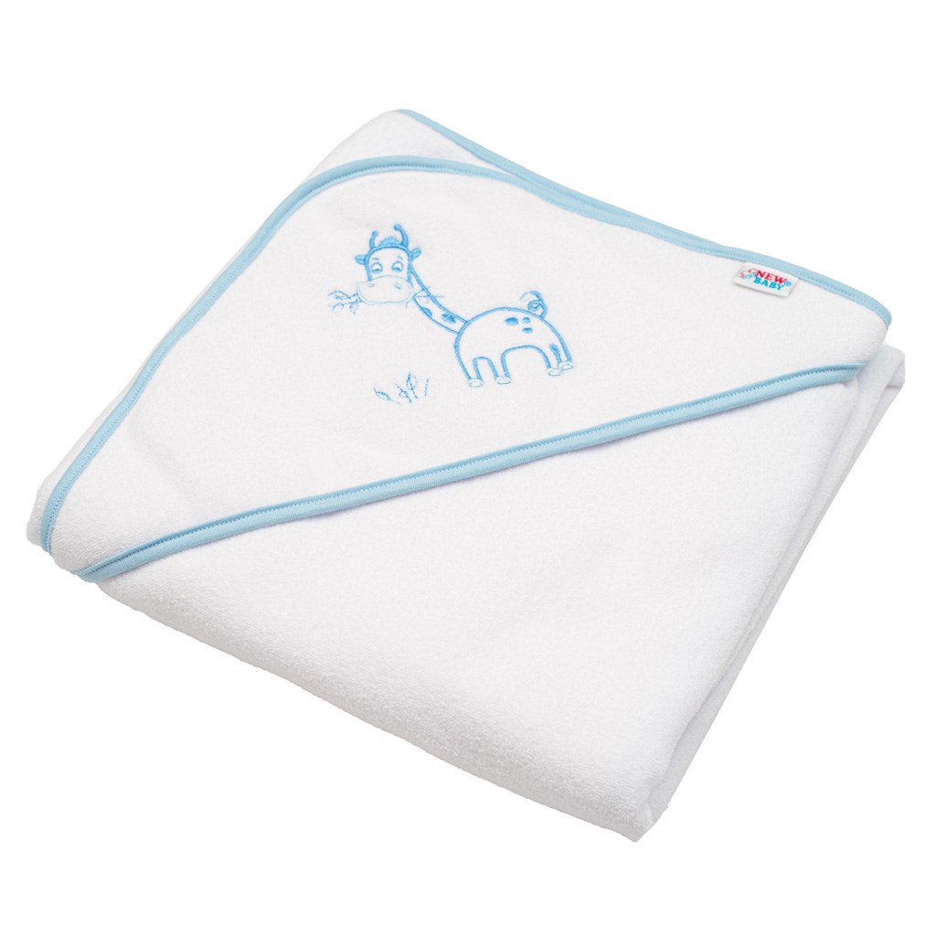 Okrycie kąpielowe frotte z kapturkiem i haftem New Baby 80x80 białe żyrafka