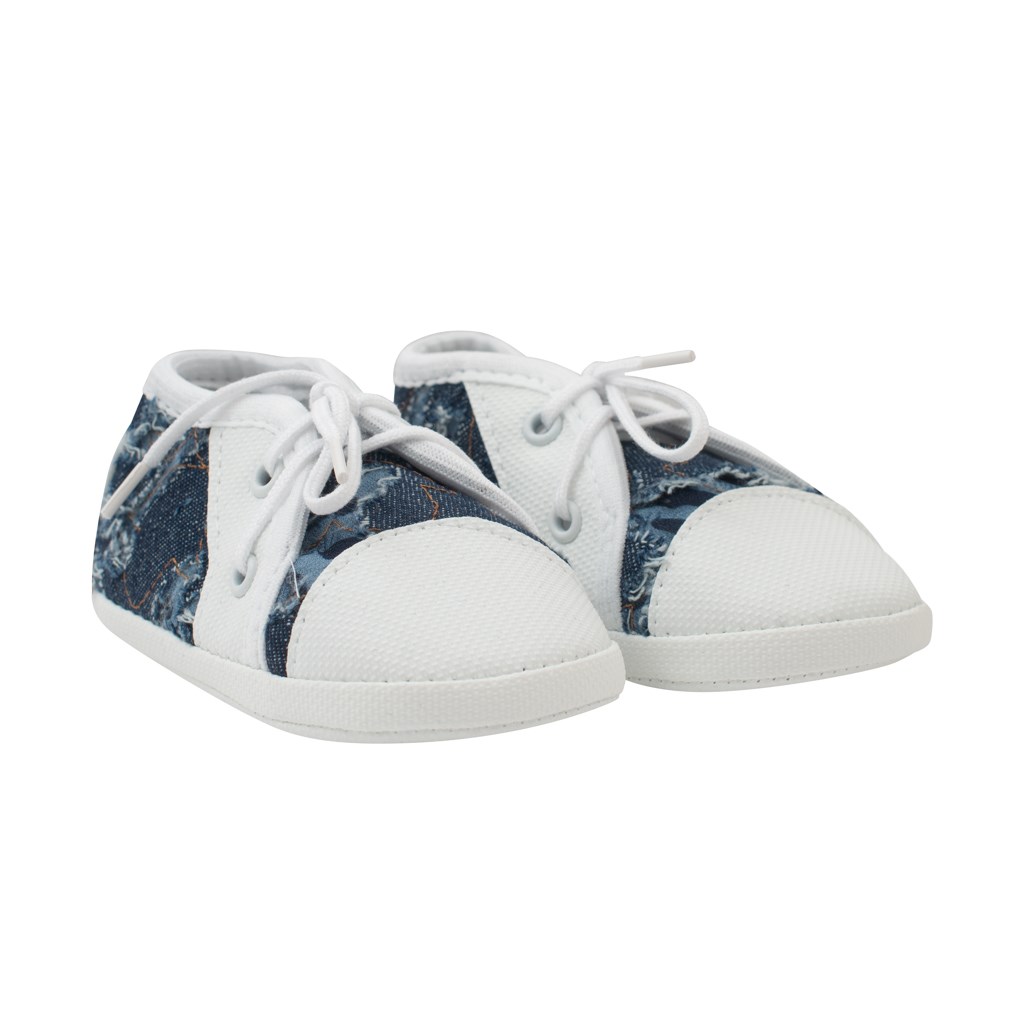 Niemowlęce, stylowe i wygodne papucie New Baby. Piękne papucie są w stylu trampek o nowoczesnym wyglądzie do wiązania z sznurkami. Paputki to idealny wybór na pierwsze buciki dla Twojego dziecka. Przylegają do stopy i mają szerokie wnętrze, co pozwala na swobodny ruch palców i rozwój mięśni. Produkt nie jest przeznaczony do chodzenia. Są bardzo lekkie z bardzo cienką syntetyczną podeszwą. Skład: 80% bawełna, 20% poliester. Podeszwa: materiał syntetyczny. Długość wkładki wewnętrznej 11 cm. Przeznaczony dla dzieci w wieku 3-6 miesięcy. Dla chłopców i dziewcząt. Dostarczamy w praktycznym pudełku Eco, dlatego nadaje się również jako miły prezent. Uwaga: pod wkładką tekstylną znajduje się papierowa wkładka utrzymująca kształt pantofli. Usuń tę papierową wkładkę przed pierwszym użyciem.