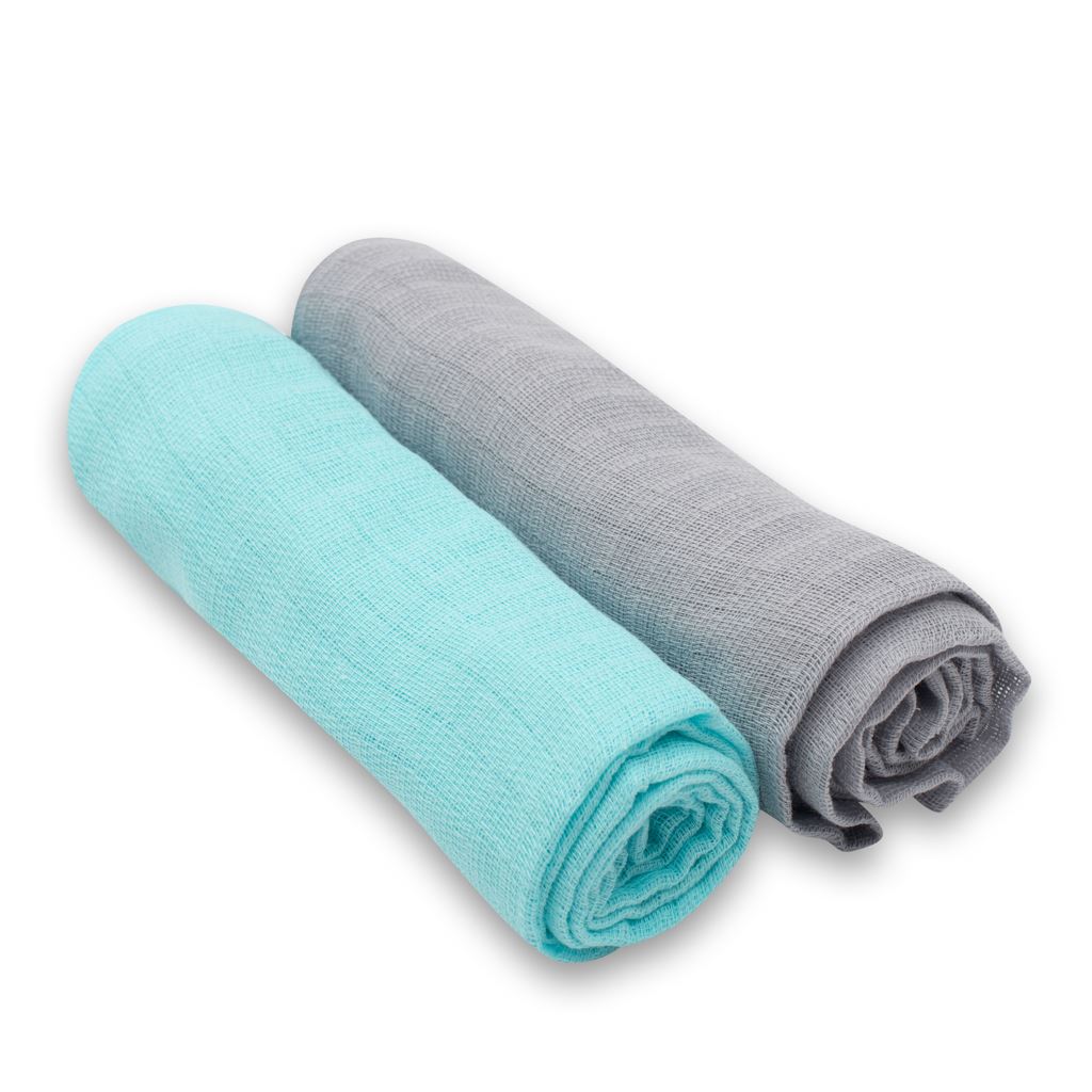 Pieluszki bawełniane New Baby 70x80 cm 2 szt szara, turkusowa