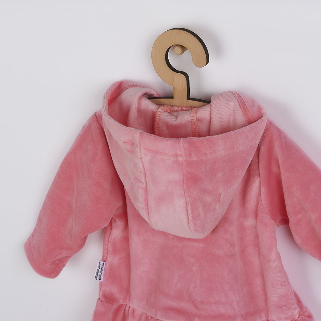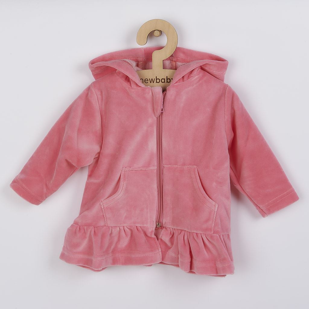 Stylowa, dziecięca welurowa bluza z kapturem New Baby Baby. Bluza ma na całej długości zamek błyskawiczny i wykończona jest uroczą falbanką. Bluza jest dłuższa i dlatego idealnie zastępuje cieńszą kurtkę lub sweter. Zadowolenie klienta jest bardzo ważne dla New Baby i dlatego bluza wykonana jest z bardzo przyjemnego materiału, w którym twoje dziecko poczuje się niezwykle komfortowo. Bluza w połączeniu z legginsami z naszej oferty będzie służyć jako piękny zestaw po domu i na spacery. Fantazja ubierania się nie zna granic i od Ciebie zależy, jak dopasować bluzę do innych ubrań marki New Baby. Skład: 80% bawełna, 20% poliester.
