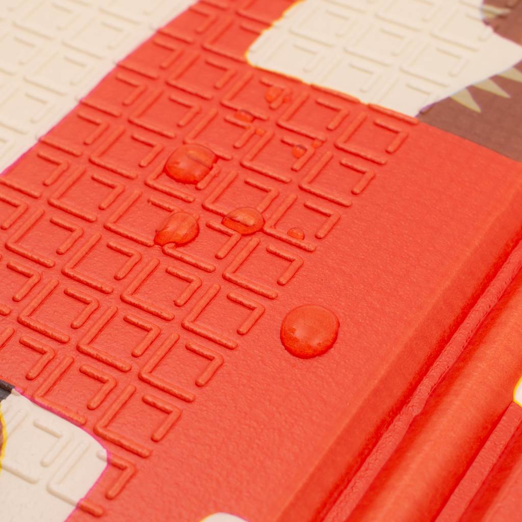 - podkładka wykonana z polietylenu piankowego (pianka XPE) oraz laminowana folią, która nie nasiąka, jest wodoodporna oraz zmywalna