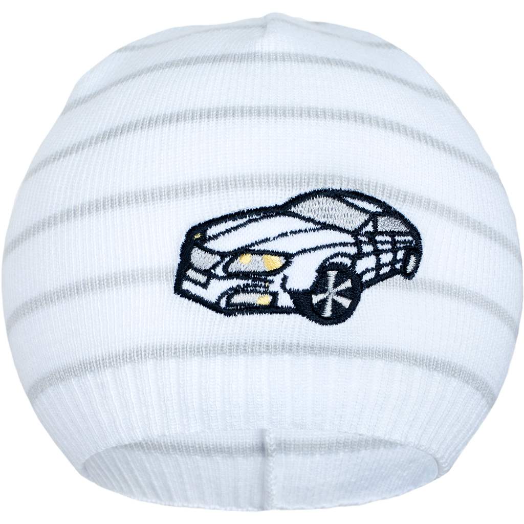 Wiosenna czapka z dzianiny New Baby samochód biało-szara