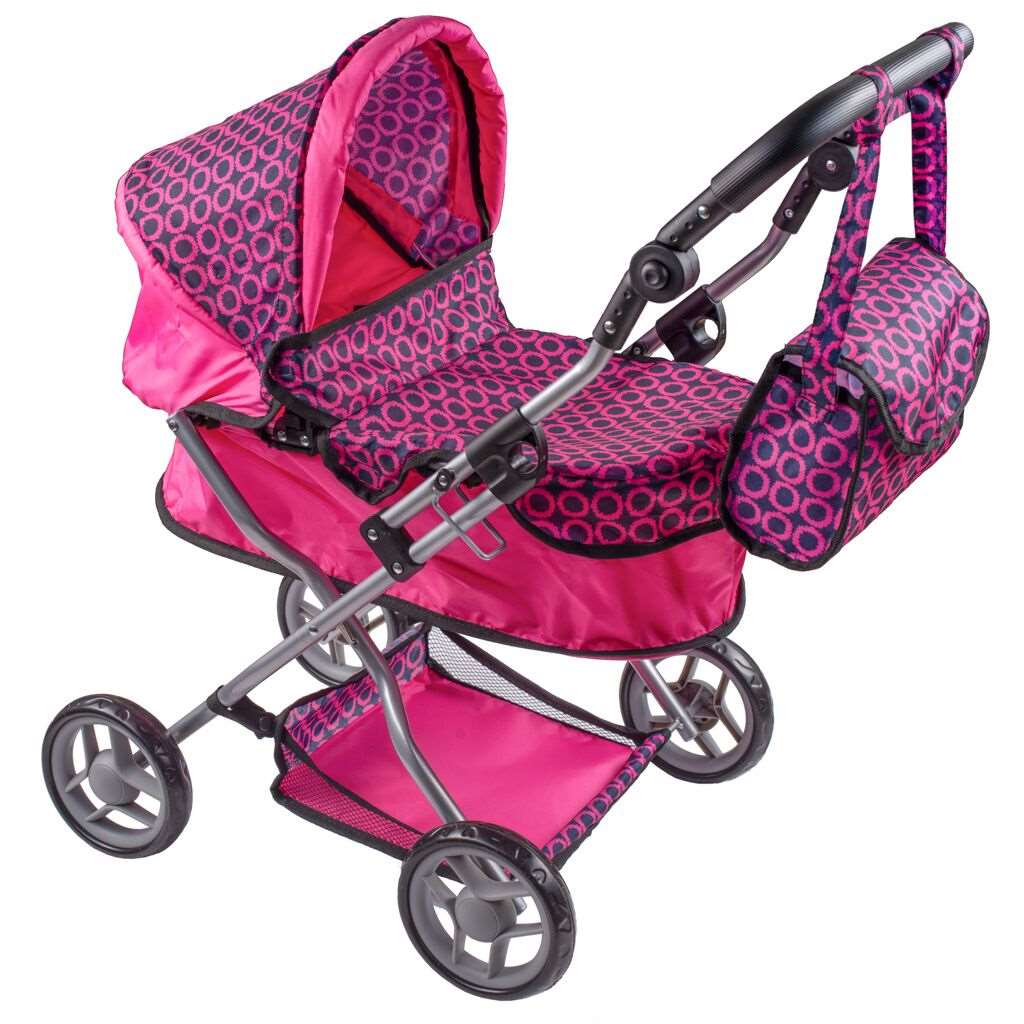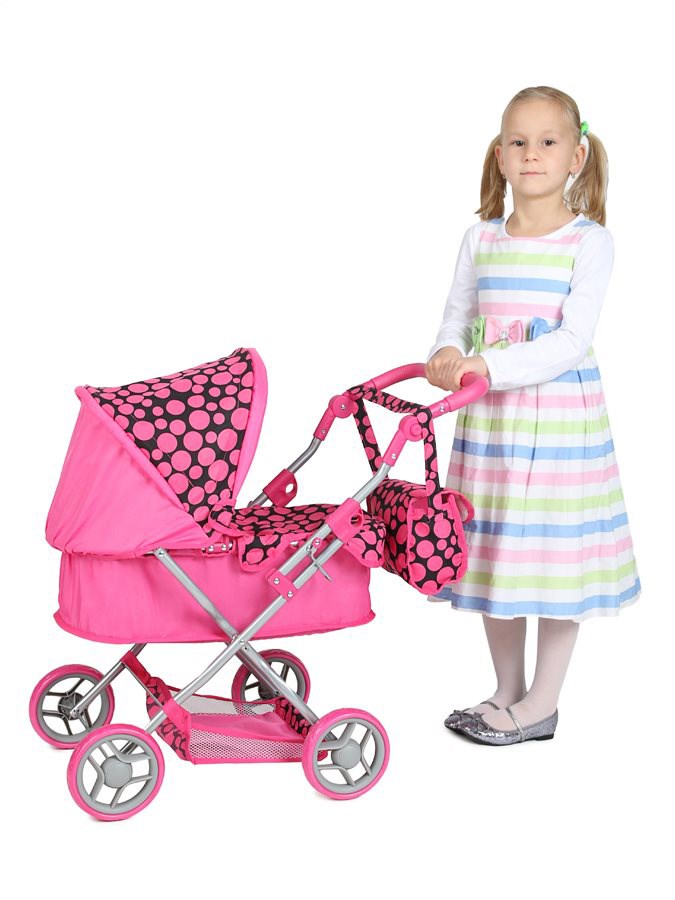 Wózek dla lalek PlayTo Wiola różowo-czarny