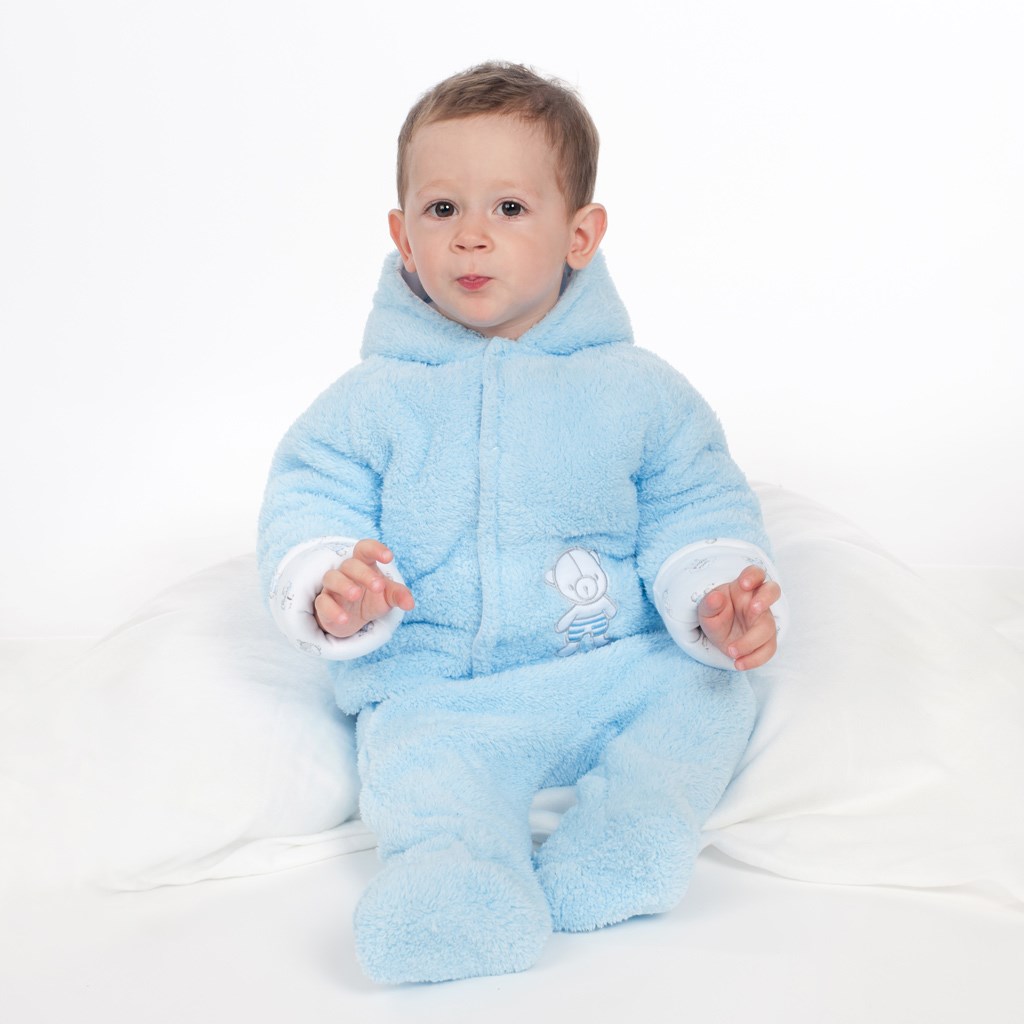 Praktyczny, zimowy kombinezon niemowlęcy z kapturem New Baby Nice Bear. Kombinezon zimowy jest wykonany z dwóch warstw materiału wysokiej jakości – wierzchniego, grubszego i cieplejszego materiału polarowego oraz spodniej, bawełnianej podszewki. Kombinezon jest ozdobiony obrazkiem misia. Wyposażony w praktyczny kaptur ze ślicznymi uszkami i ciepłe rękawiczki na sznurku. Zapięcie na napy na całej długości i między nóżkami ułatwia ubieranie i przewijanie. Kładziemy nacisk na jakość, dlatego dzięki zastosowaniu przyjemnego i miękkiego materiału wysokiej jakości Twoje dziecko poczuje się bardzo komfortowo i ciepło. Skład: wierzchnia warstwa: 80% bawełny, 20% poliesteru, podszewka: 100% bawełna, wypełniacz: włókno antyalergiczne. Wymiary: obwód wokół klatki piersiowej ok. 61 cm, długość rękawa około 24 cm, długość całkowita ok. 60 cm, długość rękawiczek ok. 12 cm.