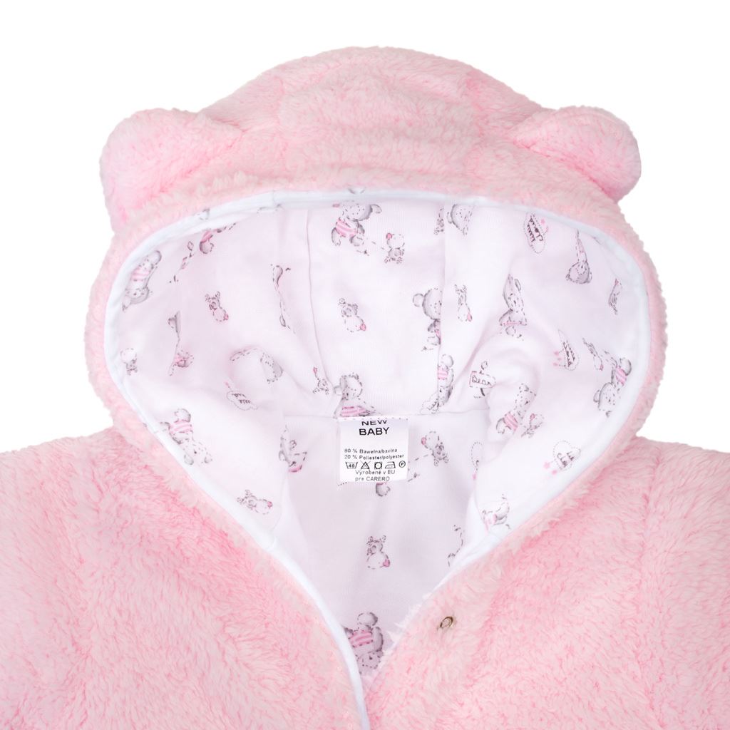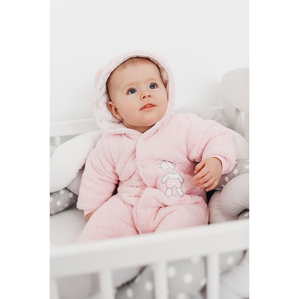 Praktyczny, zimowy kombinezon niemowlęcy z kapturem New Baby Nice Bear. Kombinezon zimowy jest wykonany z dwóch warstw materiału wysokiej jakości – wierzchniego, grubszego i cieplejszego materiału polarowego oraz spodniej, bawełnianej podszewki. Kombinezon jest ozdobiony obrazkiem misia. Wyposażony w praktyczny kaptur ze ślicznymi uszkami i ciepłe rękawiczki na sznurku. Zapięcie na napy na całej długości i między nóżkami ułatwia ubieranie i przewijanie. Kładziemy nacisk na jakość, dlatego dzięki zastosowaniu przyjemnego i miękkiego materiału wysokiej jakości Twoje dziecko poczuje się bardzo komfortowo i ciepło. Skład: wierzchnia warstwa: 80% bawełny, 20% poliesteru, podszewka: 100% bawełna, wypełniacz: włókno antyalergiczne.