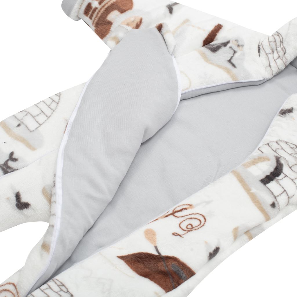 Piękny zimowy pajacyk z kapturem i uszami New Baby Eskimo dla dzieci. Ozdabia go urocza grafika z Eskimosem. Pajacyk wykonano z ciepłego materiału, tzw. wellsoftu. Wellsoft to mięciutka, lekka i niezwykle miła w dotyku tkanina, która jednocześnie bardzo dobrze chroni przed zimnem. Pajacyk ocieplony jest antyalergicznym włóknem i podszyty bawełnianą podszewką. Podszewka jest gładka, przewiewna i miła w dotyku, zwiększa również komfort noszenia. Zapięcie na całej długości na dwa zamki. Rękawy można wywinąć, odsłaniając w ten sposób bawełnianą podszewkę. Materiał: 100% poliester – wellsoft, podszewka 100% bawełna, wypełnienie: włókno antyalergiczne.